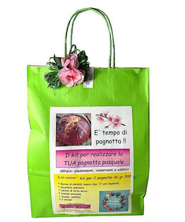 Kit contenente tutto il necessario (stampi compresi) per la realizzazione in casa di DUE classiche PAGNOTTE PASQUALI da g 500 circa cadauna.