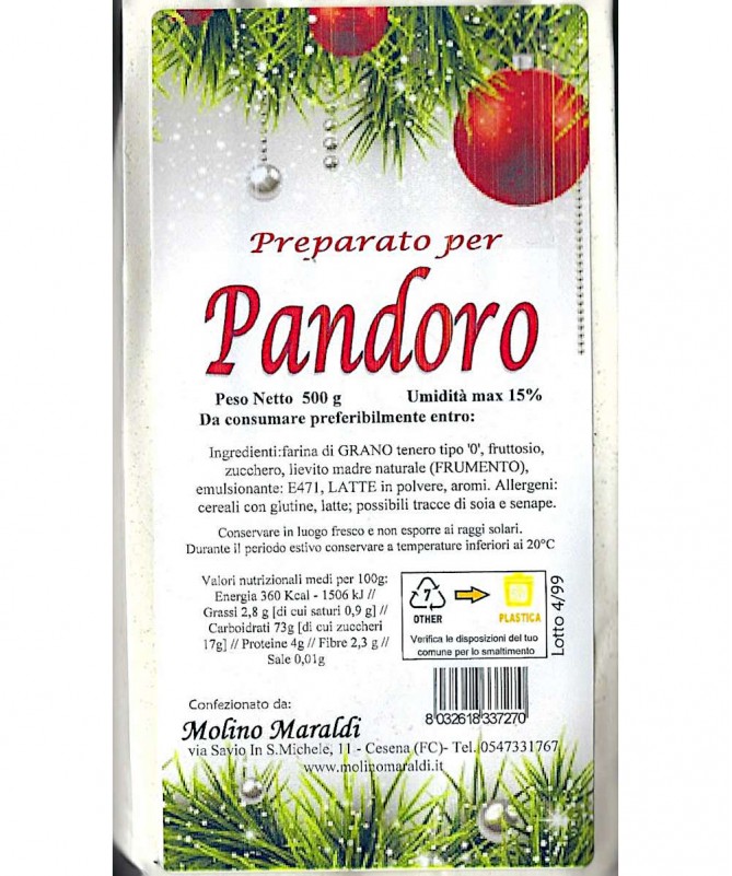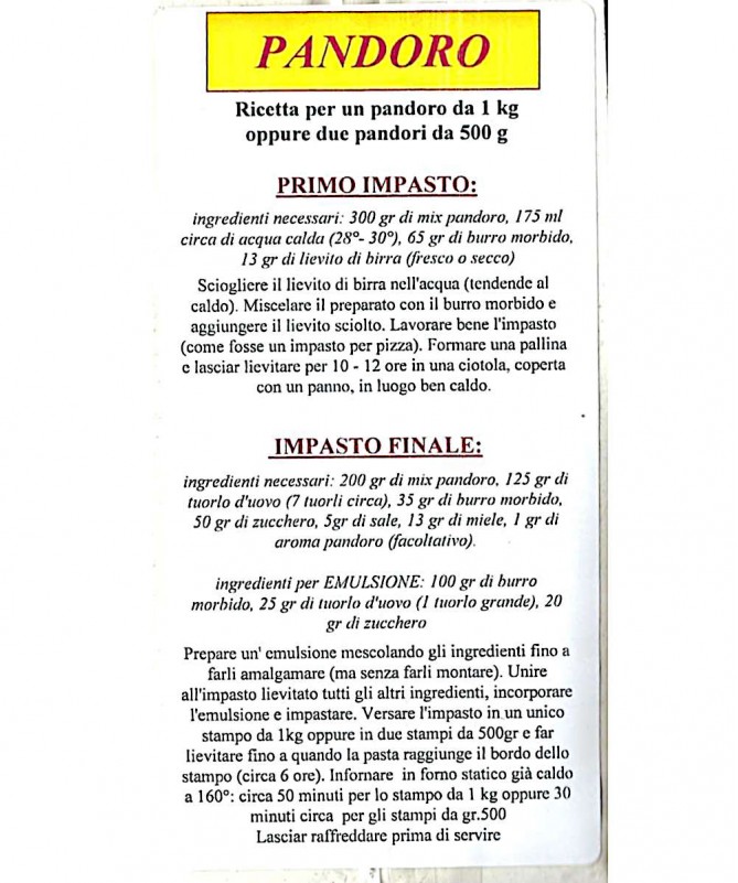 Impasto sufficiente per realizzare un pandoro da kg 1 oppure due pandori da g 500 ciascuno.