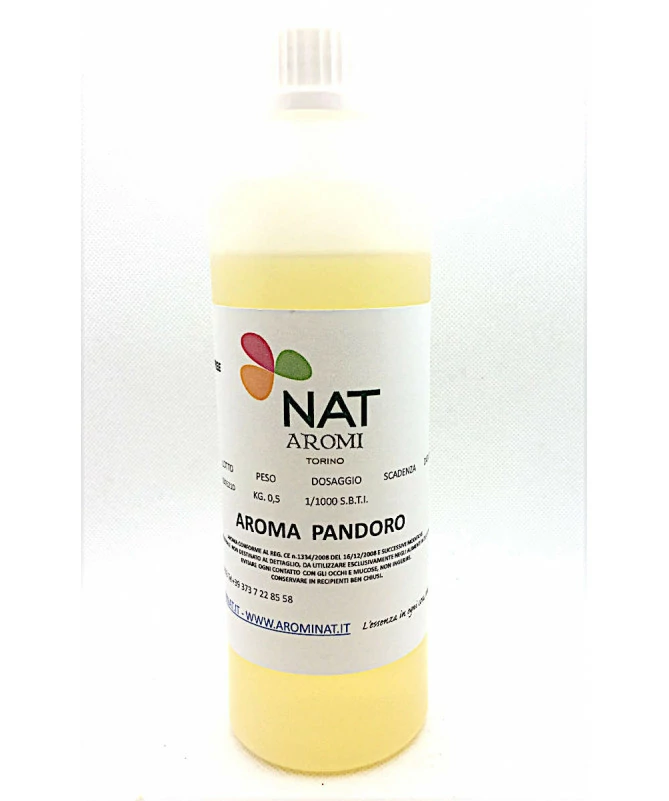 Aroma PANDORO, disponibile in flaconi da g 500 per aromatizzare kg 500 di impasto.