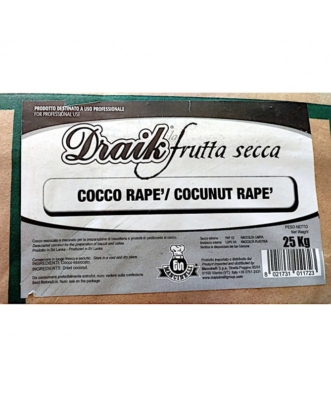 Cocco rapé essiccato e macinato per la preparazione di biscotteria e prodotti di pasticceria.
