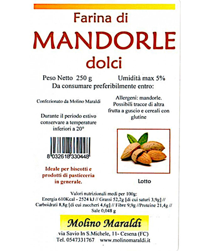 Farina di mandorle dolci, ideali per biscotti e prodotti di pasticceria in generale.