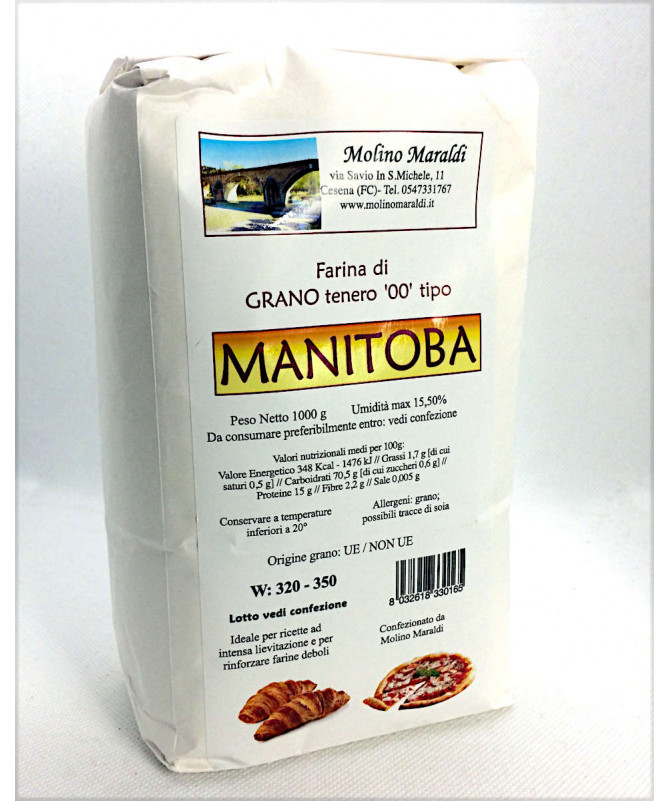 Farina di grano tenero tipo Manitoba, W 320-350, ottenuta dalla macinazione di grani di forza. Ideale per grandi lievitati come panettone, colomba, pandoro e per rinforzare altre farine deboli.