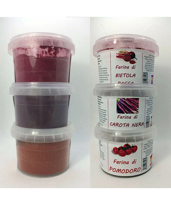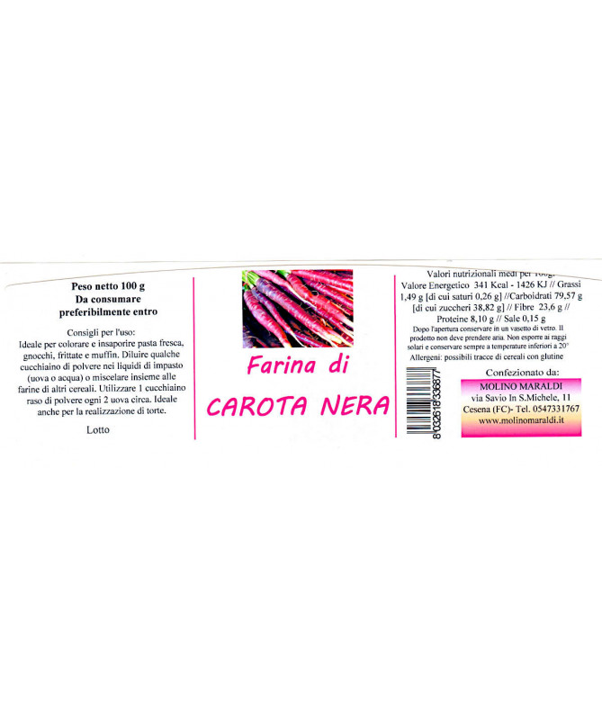 Farina di CAROTA NERA, ideale per colorare e insaporire pasta fresca, gnocchi, frittate, muffin.