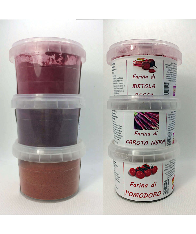 Farina di POMODORO, ideale per condire e aromatizzare salse, sughi e zuppe e per colorare e insaporire pasta fresca, pane e prodotti da forno.