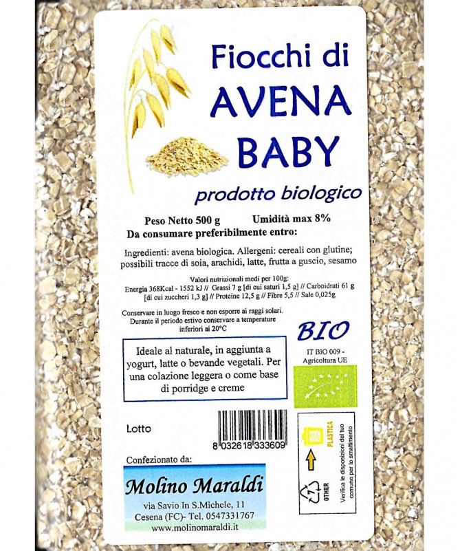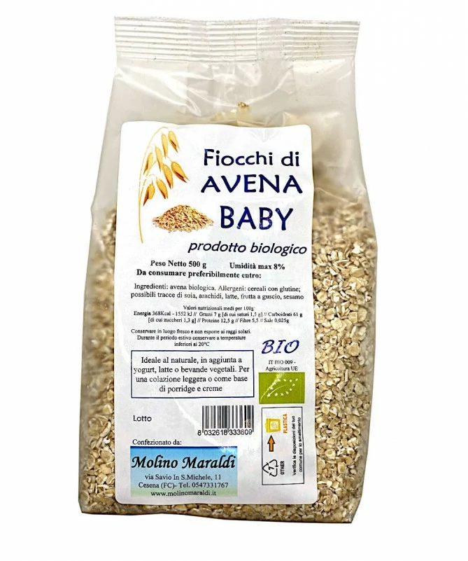 Fiocchi di avena baby al naturale, da agricoltura biologica.