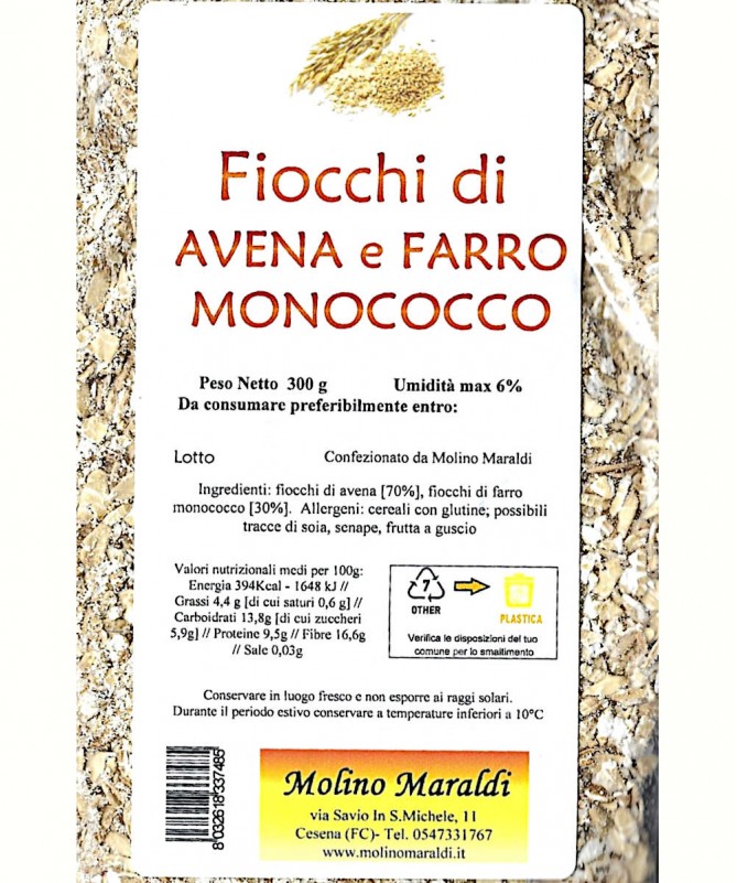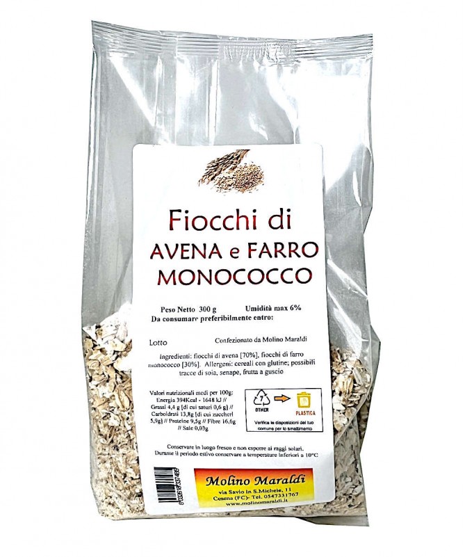 Miscela di fiocchi di avena (70%) e fiocchi di FARRO monococco (30%).