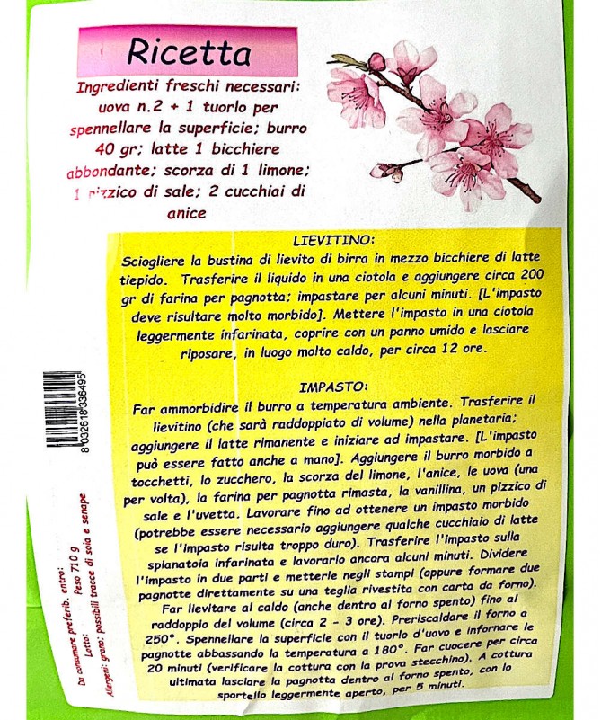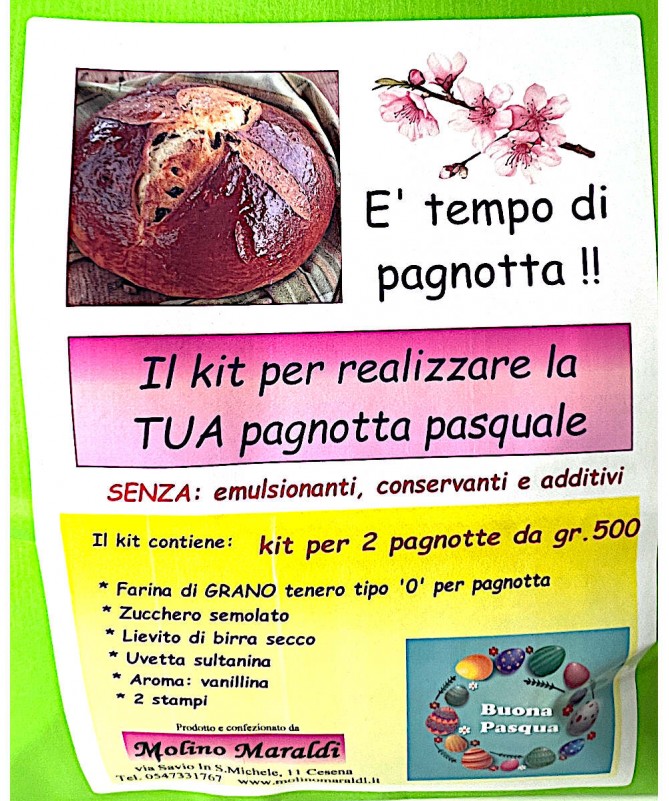 Kit contenente tutto il necessario (stampi compresi) per la realizzazione in casa di DUE classiche PAGNOTTE PASQUALI da g 500 circa cadauna.