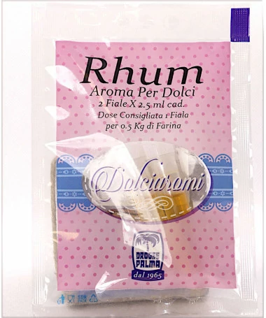 Ideale per aromatizzare i vostri dolci, ogni confezione contiene due fialette di aroma rhum.
