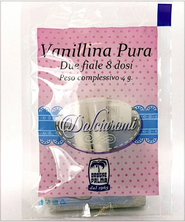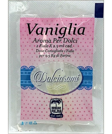 Ideale per aromatizzare i vostri dolci, ogni confezione contiene due fialette di aroma vanillina.