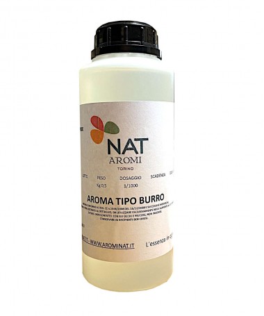 Aroma tipo BURRO, disponibile in flaconi da g 500 per aromatizzare kg 500 di impasto.