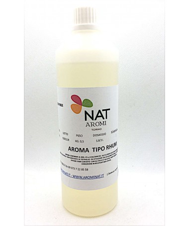 Aroma tipo RHUM, disponibile in flaconi da g 500 per aromatizzare kg 500 di impasto.