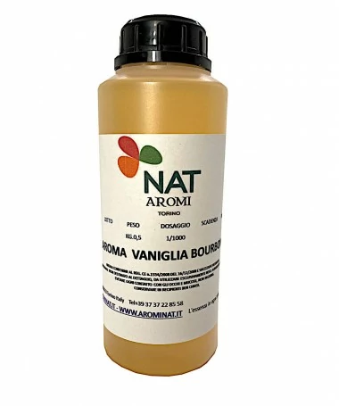 Aroma VANIGLIA BOURBON, disponibile in flaconi da g 500 per aromatizzare kg 500 di impasto.
