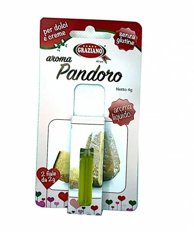 Ideale per aromatizzare i vostri dolci, ogni confezione contiene due fialette di aroma pandoro.