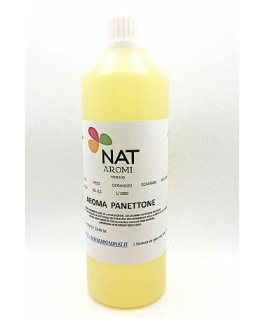 Aroma PANETTONE, disponibile in flaconi da g 500 per aromatizzare kg 500 di impasto.