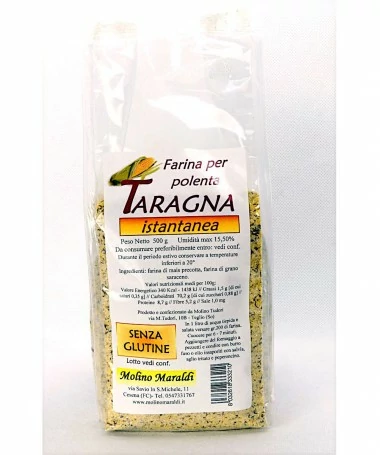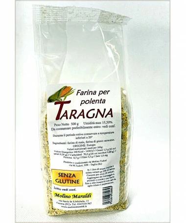 Farina di mais giallo e farina di grano saraceno, precotte, per una preparazione rapidissima della polenta taragna. Cottura 6-7 minuti!