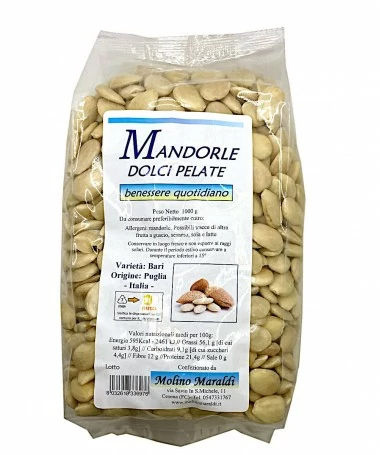 Mandorle dolci pelate, varietà Bari. Origine Puglia - Italia
