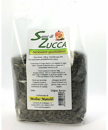 I semi di zucca possiedono proprietà benefiche molto importanti: sono considerati un antinfiammatorio naturale molto potente; ricchi di ferro, zinco e magnesio. Data la loro bassa percentuale di grassi saturi e zuccheri possono essere un'ottimo spuntino, alternativo a snack più impegnativi. Si utilizzano crudi o leggermente tostati, in aggiunta a insalate o a verdure saltate in padella. Provateli nel pane! Gustosissimi!