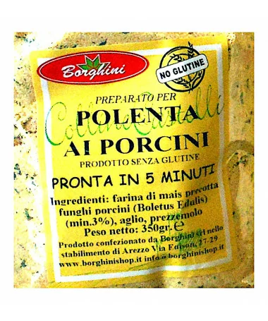 Farina di mais precotta aromatizzata ai funghi porcini. Questo prodotto è senza glutine.