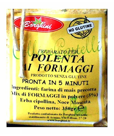Farina di mais precotta aromatizzata ai formaggi. Questo prodotto è senza glutine.