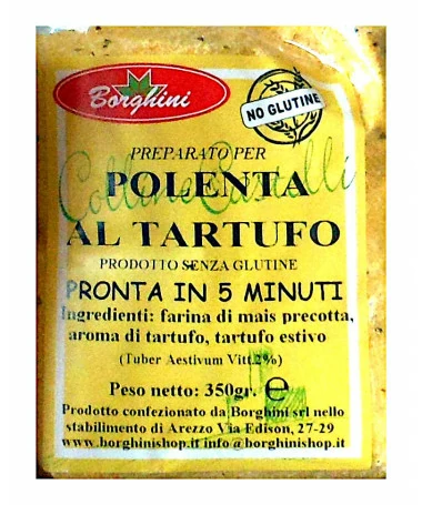 Farina di mais precotta aromatizzata al tartufo. Questo prodotto è senza glutine.