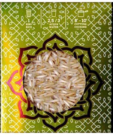 BASMATI INTEGRALE, riso aromatico coltivato in India alle pendici dell'Himalaya nella regione de Punjab, selezionato e stagionato per un anno. Il riso basmati è un riso a chicco lungo, ideale per accompagnare piatti etnici.