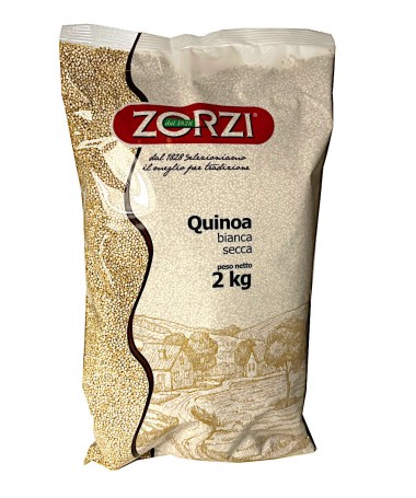 Semi di quinoa bianca. La quinoa appartiene alla stessa famiglia di spinaci e barbabietole ma si utilizza come se fosse un cereale.