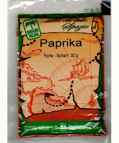 PAPRIKA FORTE tipo piccante. La paprika è ottenuta dalla macinazione dei peperoni essiccati.