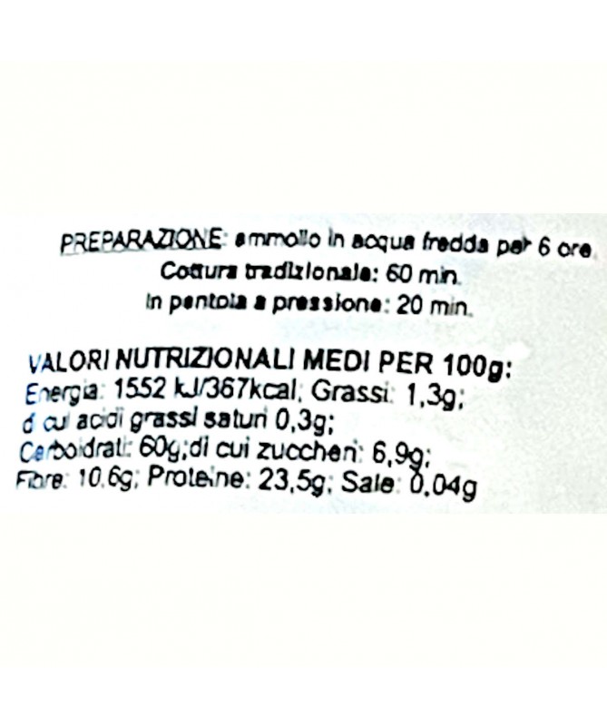 Cottura tradizionale 60-90 minuti, in pentola a pressione 20 minuti.