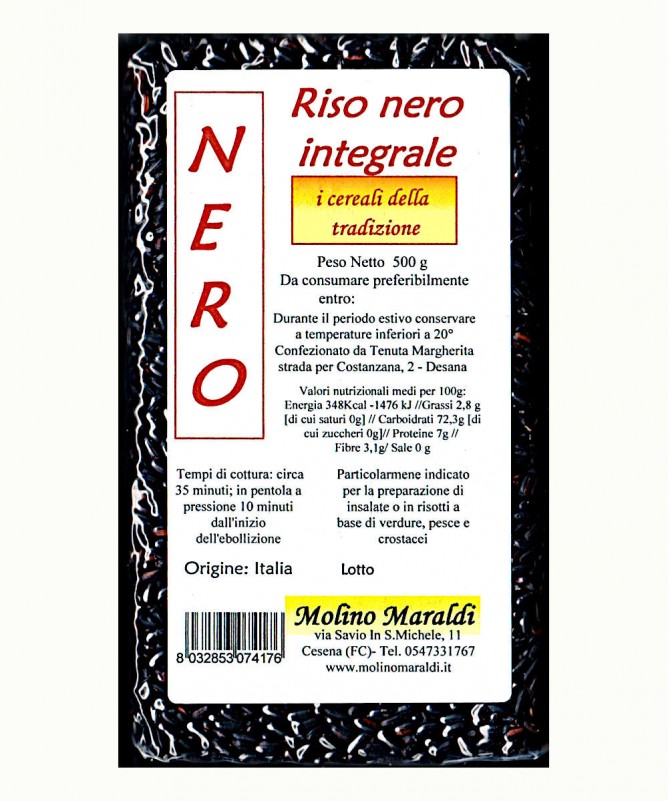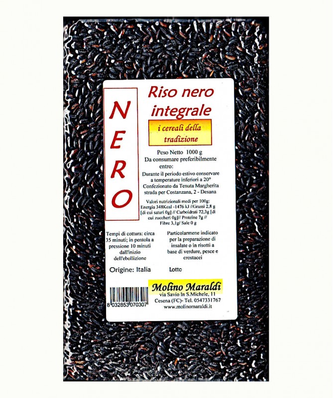 Riso NERO integrale: è un riso di colore nero coltivato e lavorato in Italia, Piemonte.