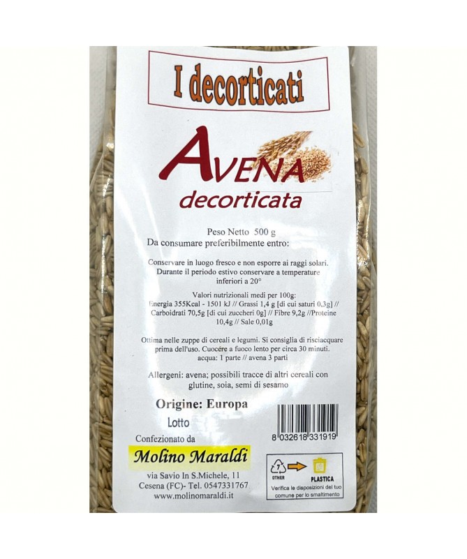 AVENA decorticata. L'avena è un cereale, naturalmente povero di glutine.