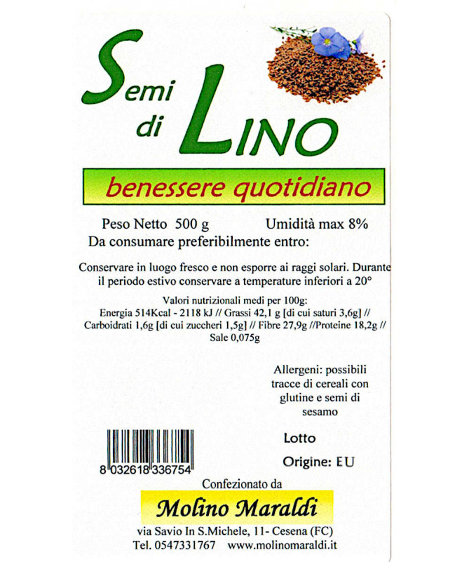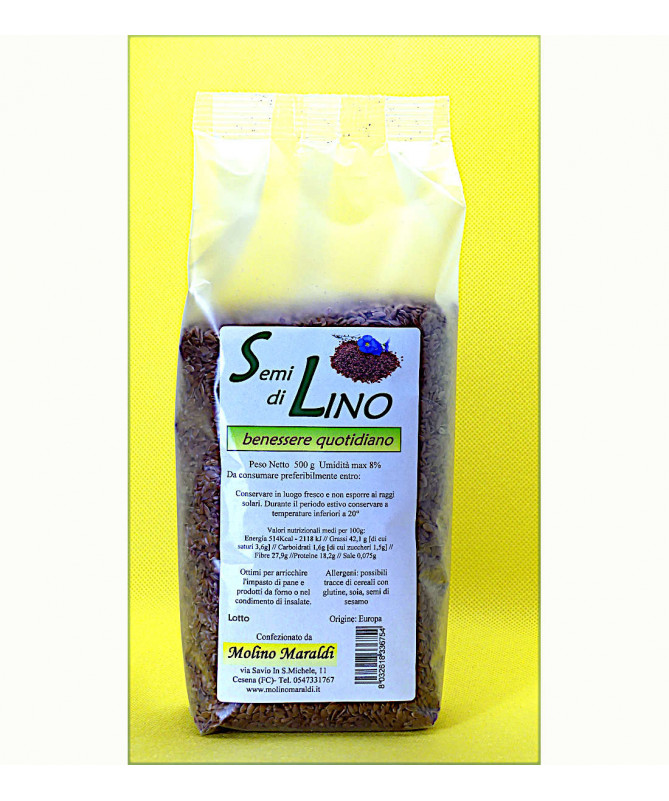 I semi di lino contengono grassi insaturi (Omega 3 e Omega 6), proteine, antiossidanti, fibre solubili e insolubili, calcio, magnesio, acido folico, potassio.