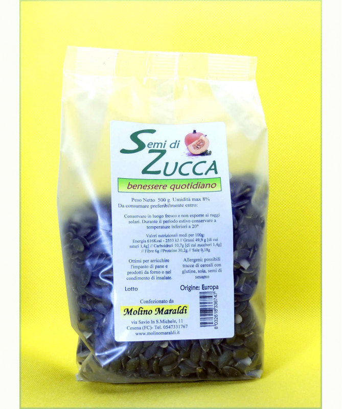 I semi di zucca possiedono proprietà benefiche molto importanti: sono considerati un antinfiammatorio naturale molto potente; ricchi di ferro, zinco e magnesio. Data la loro bassa percentuale di grassi saturi e zuccheri possono essere un'ottimo spuntino, alternativo a snack più impegnativi. Si utilizzano crudi o leggermente tostati, in aggiunta a insalate o a verdure saltate in padella. Provateli nel pane! Gustosissimi!