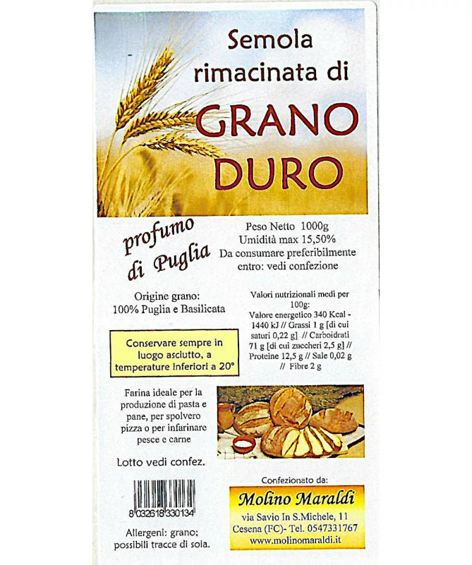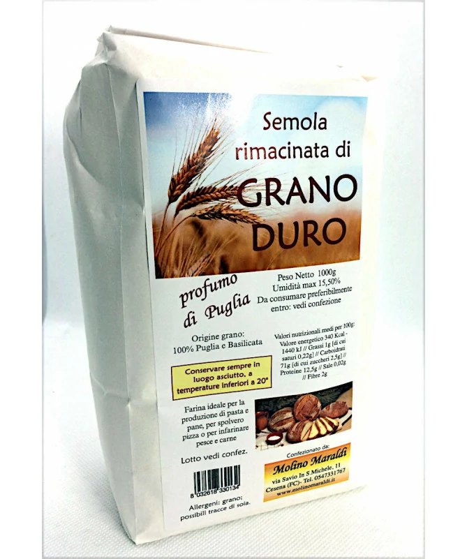 Dalla macinazione del grano duro, in base alla granulometria del prodotto finito, si ottengono la semola o la semola rimacinata.