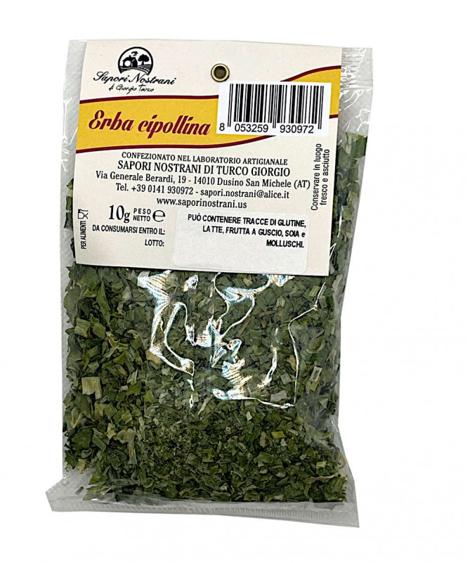 Erba cipollina disidratata in sacchettino da g 10. Una spezia classica, che non può mancare in dispensa.