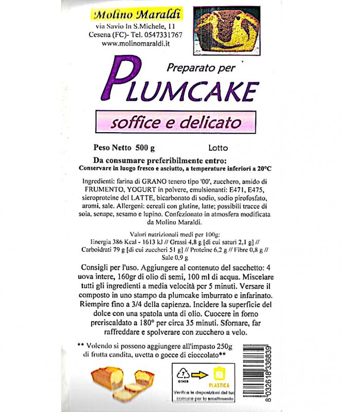 Mix per realizzare un ottimo plumcake che potrà eventualmente essere arricchito a piacimento ad esempio con uvetta sultanina oppure con gocce di cioccolato.